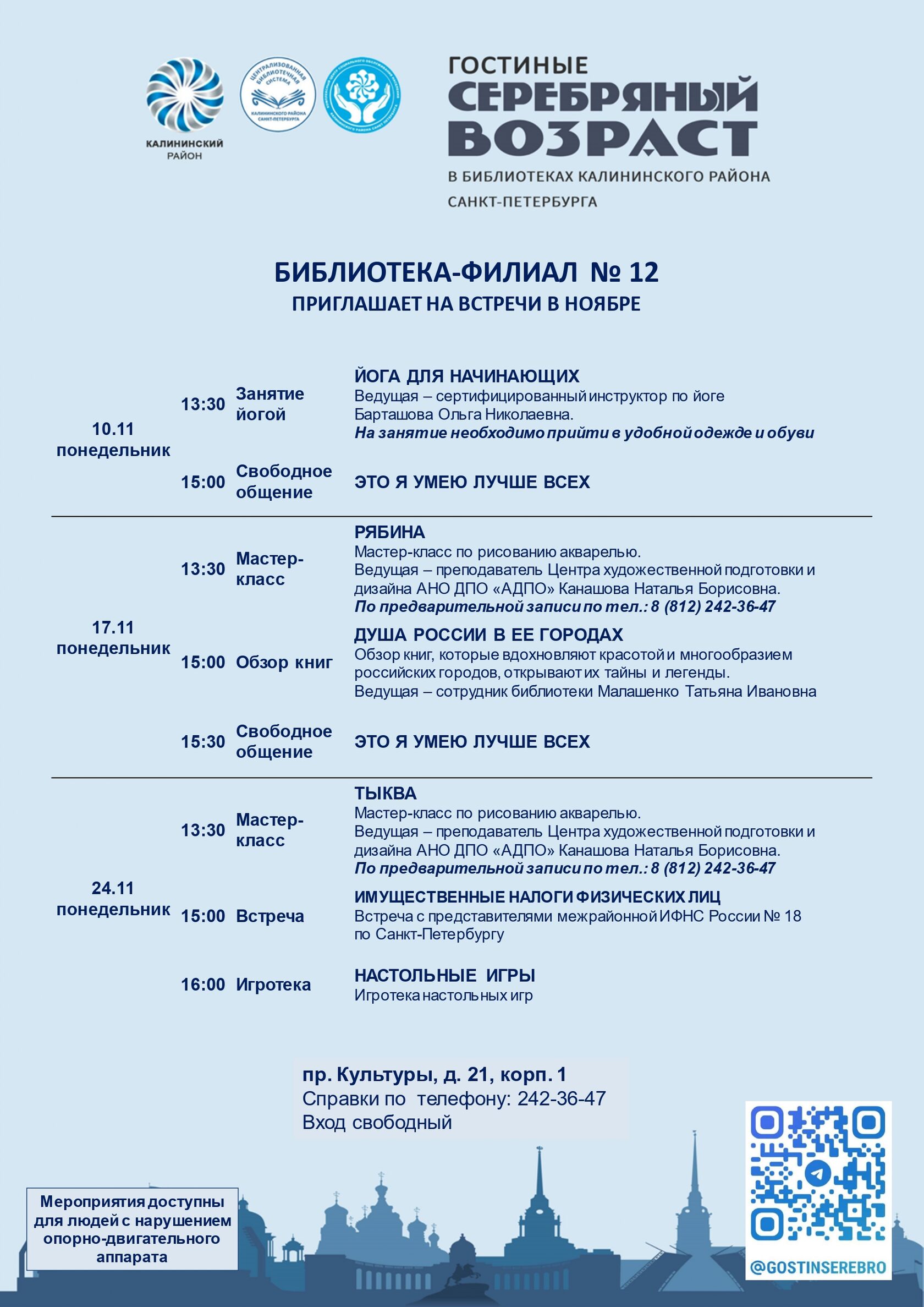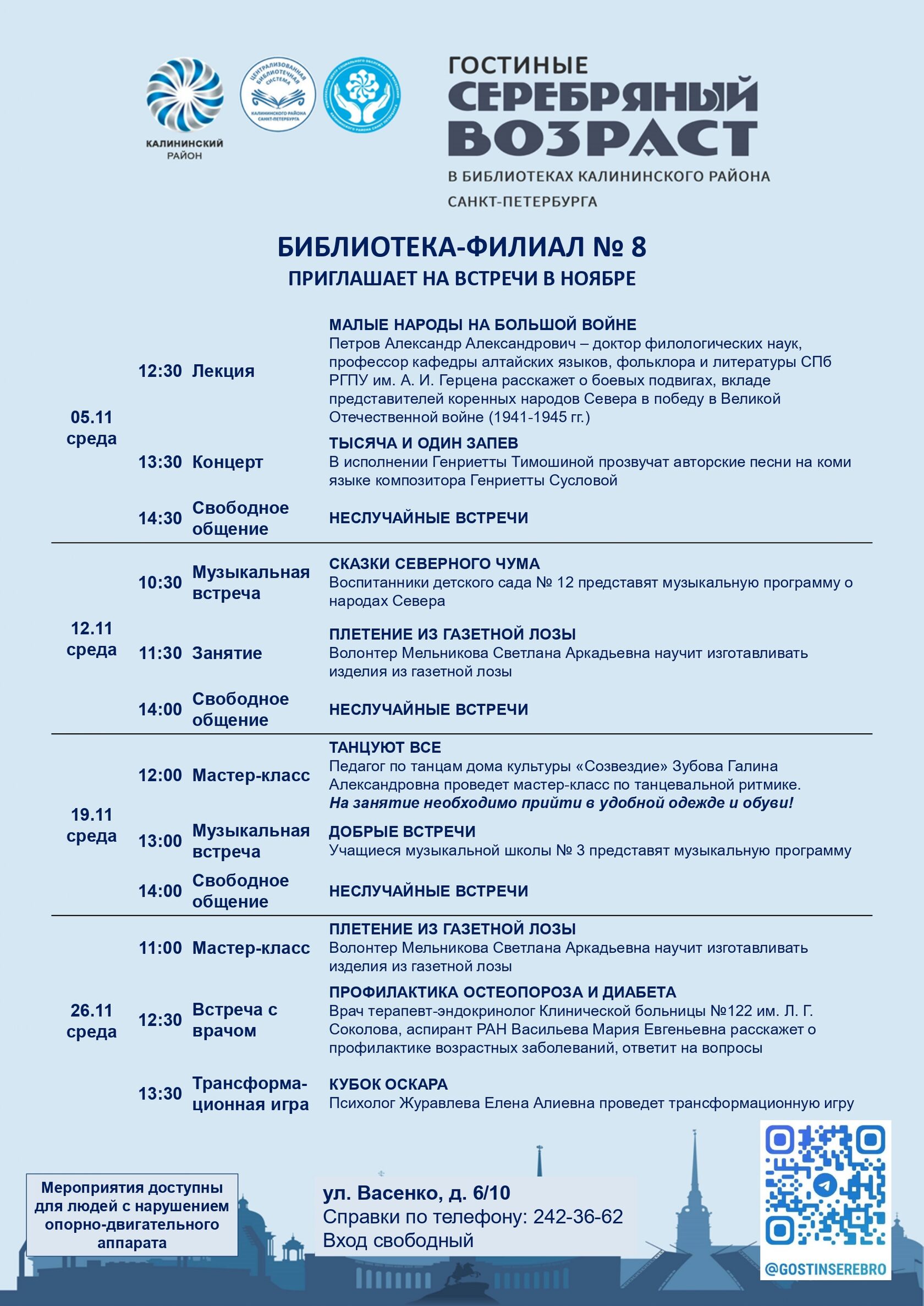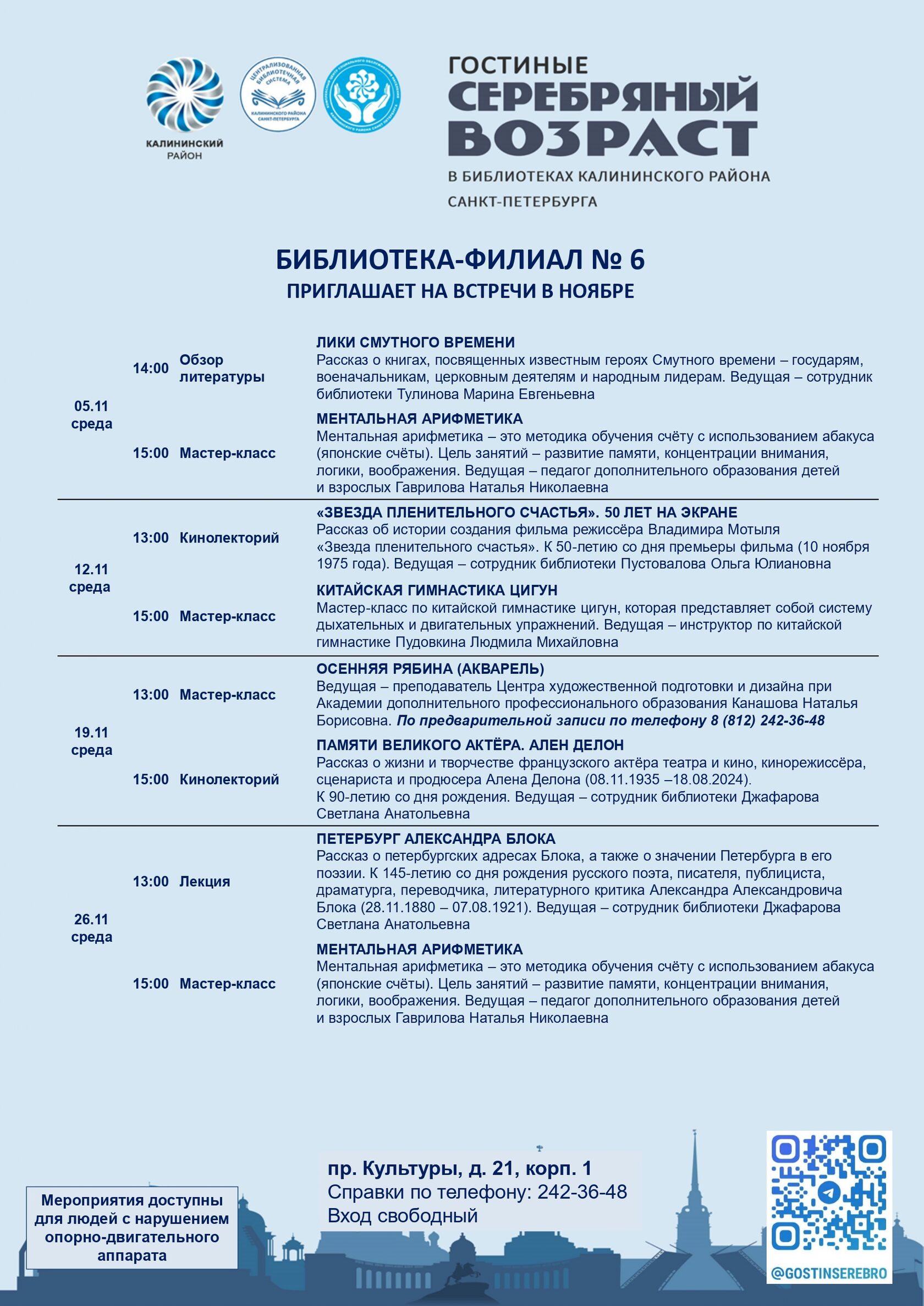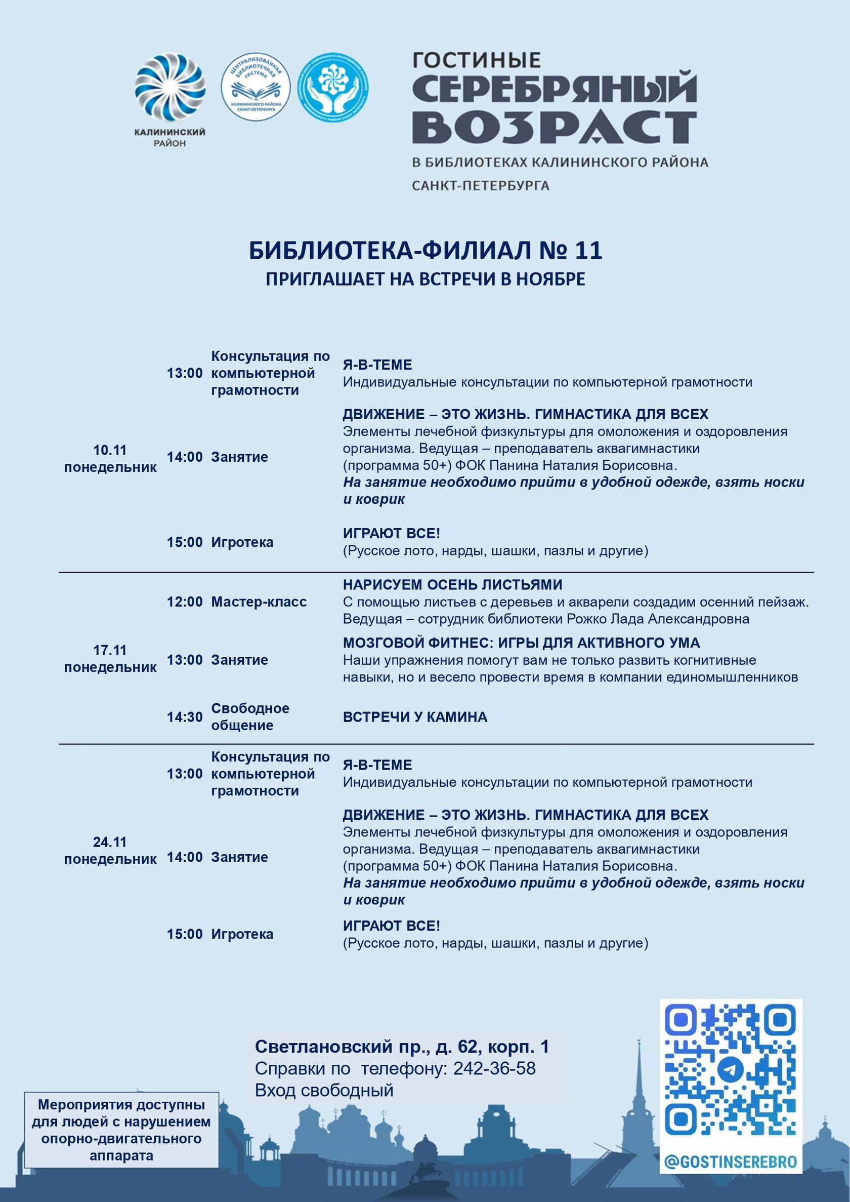Афиша гостиных «Серебряный возраст» на ноябрь