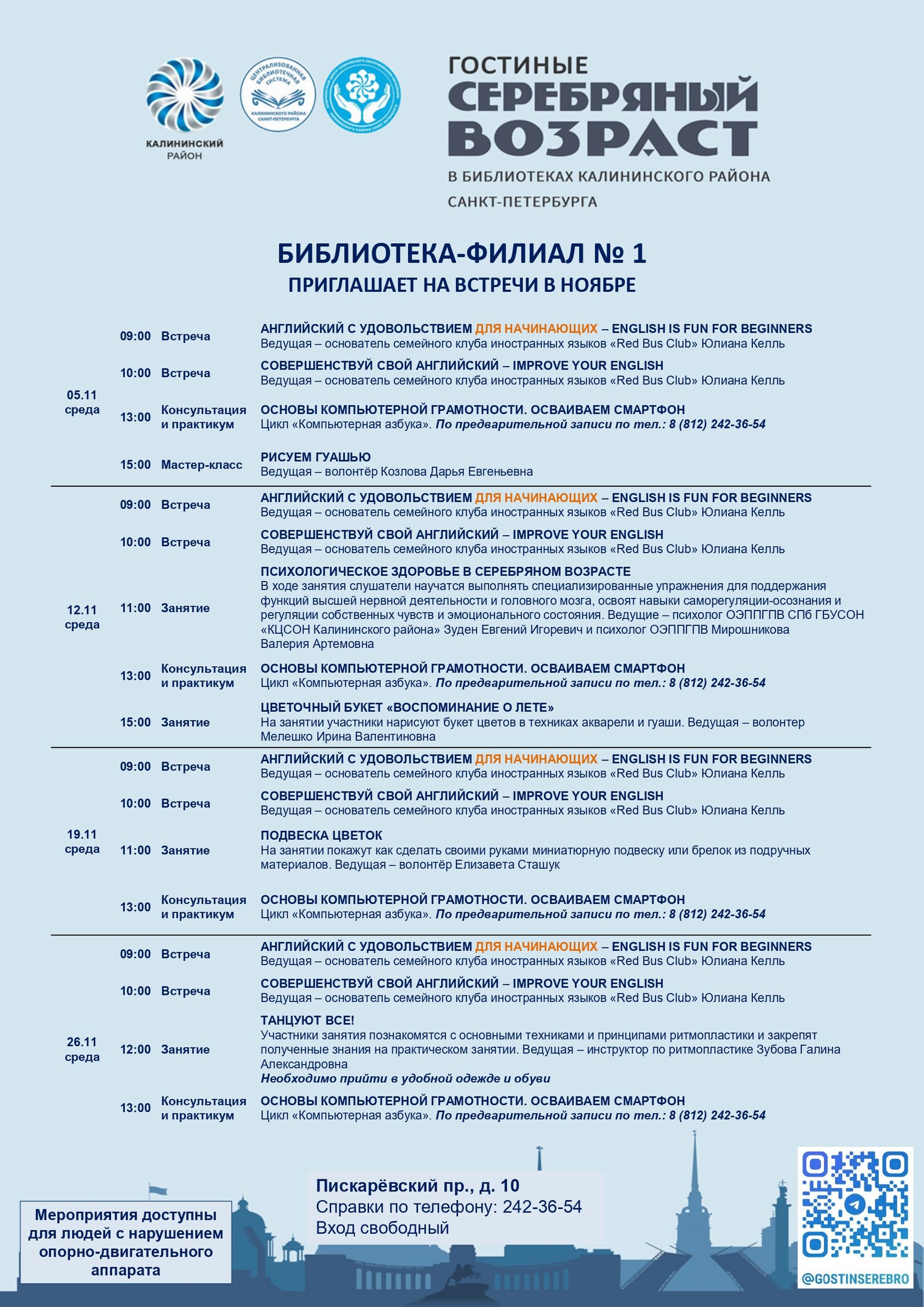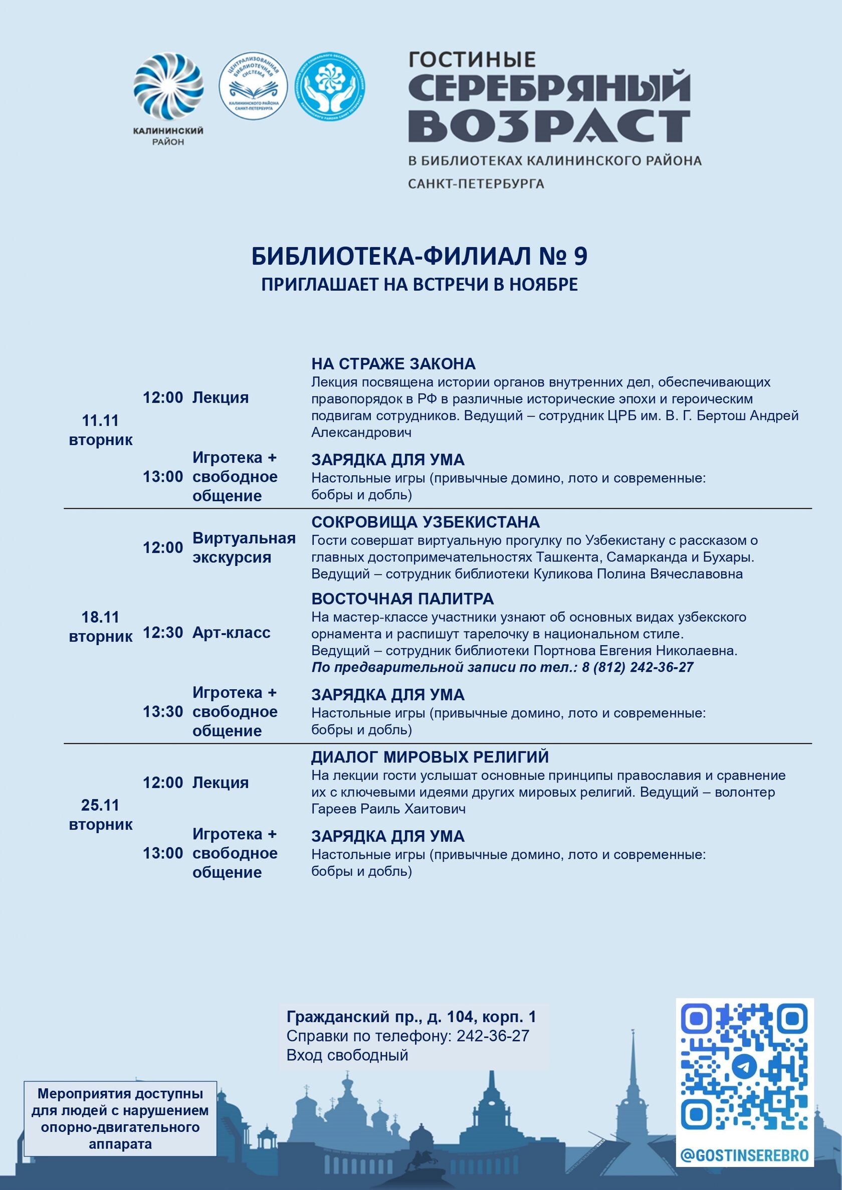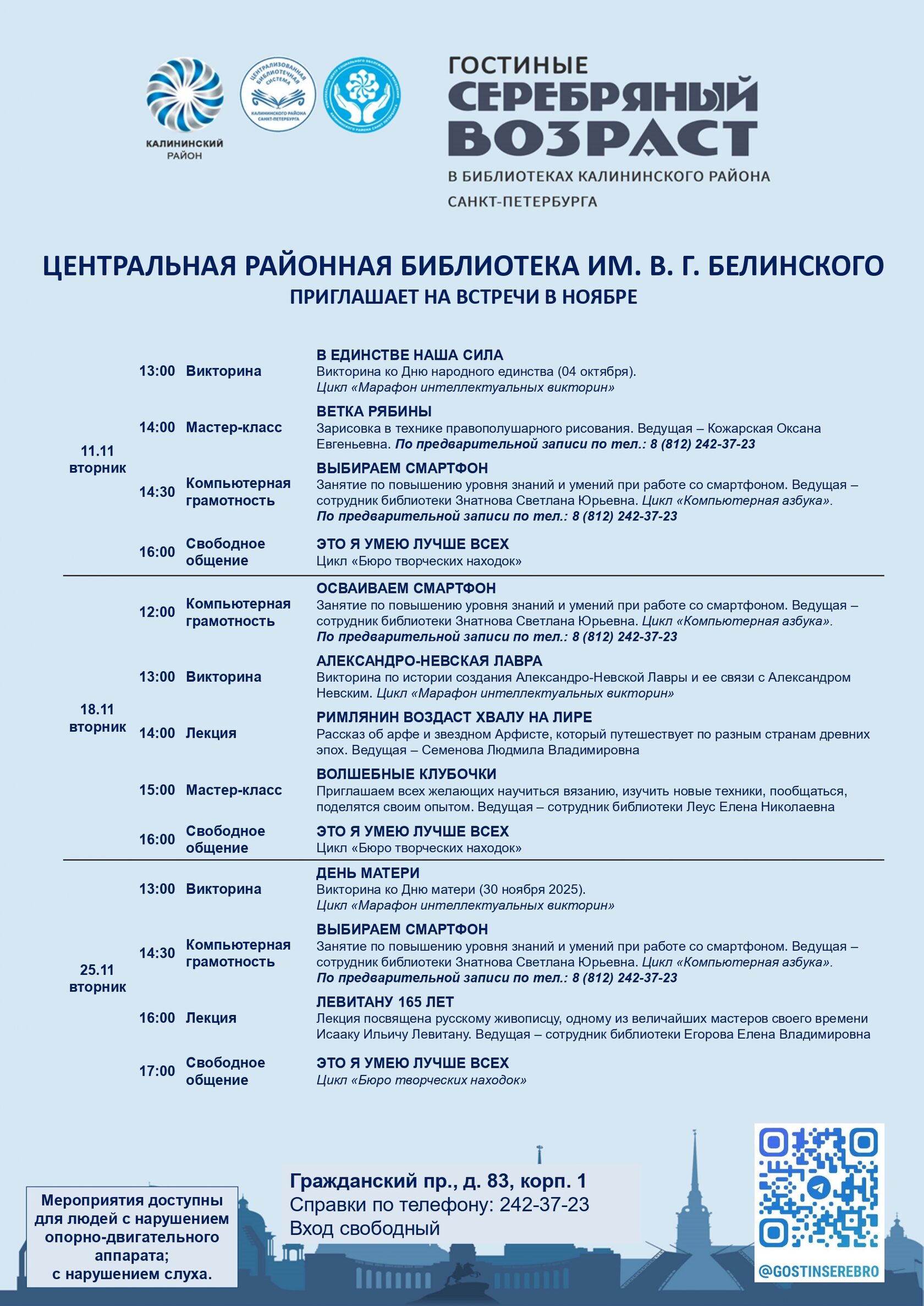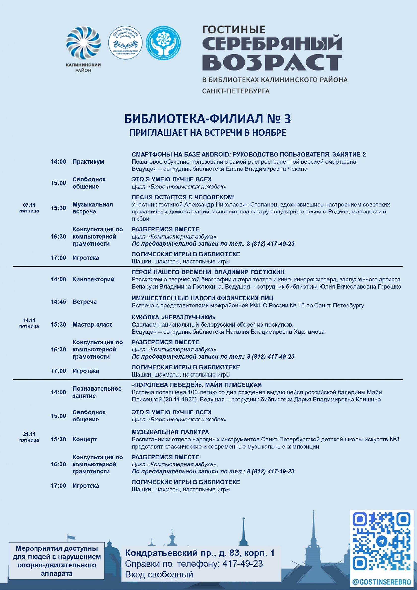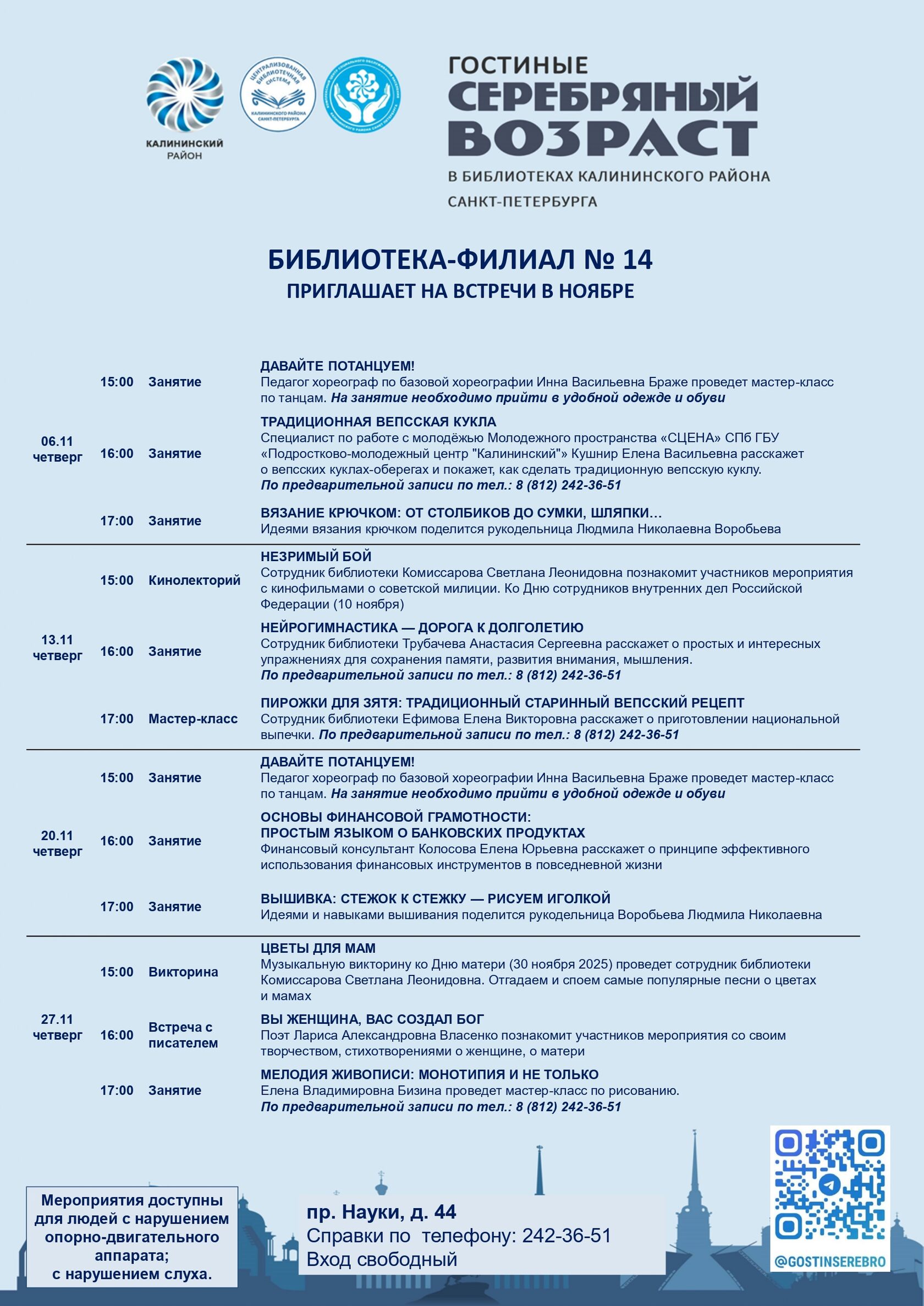 Афиша гостиных «Серебряный возраст» на ноябрь