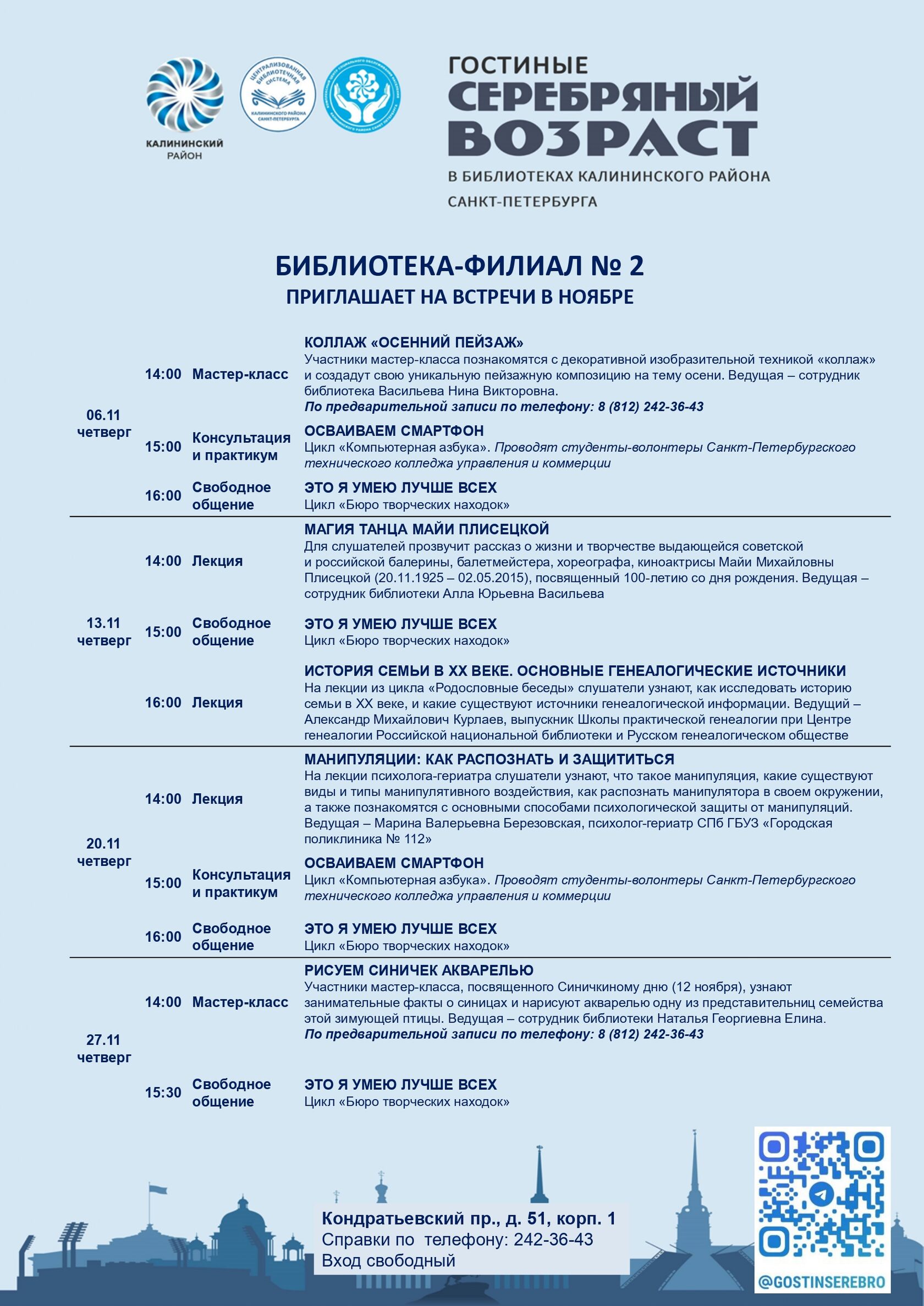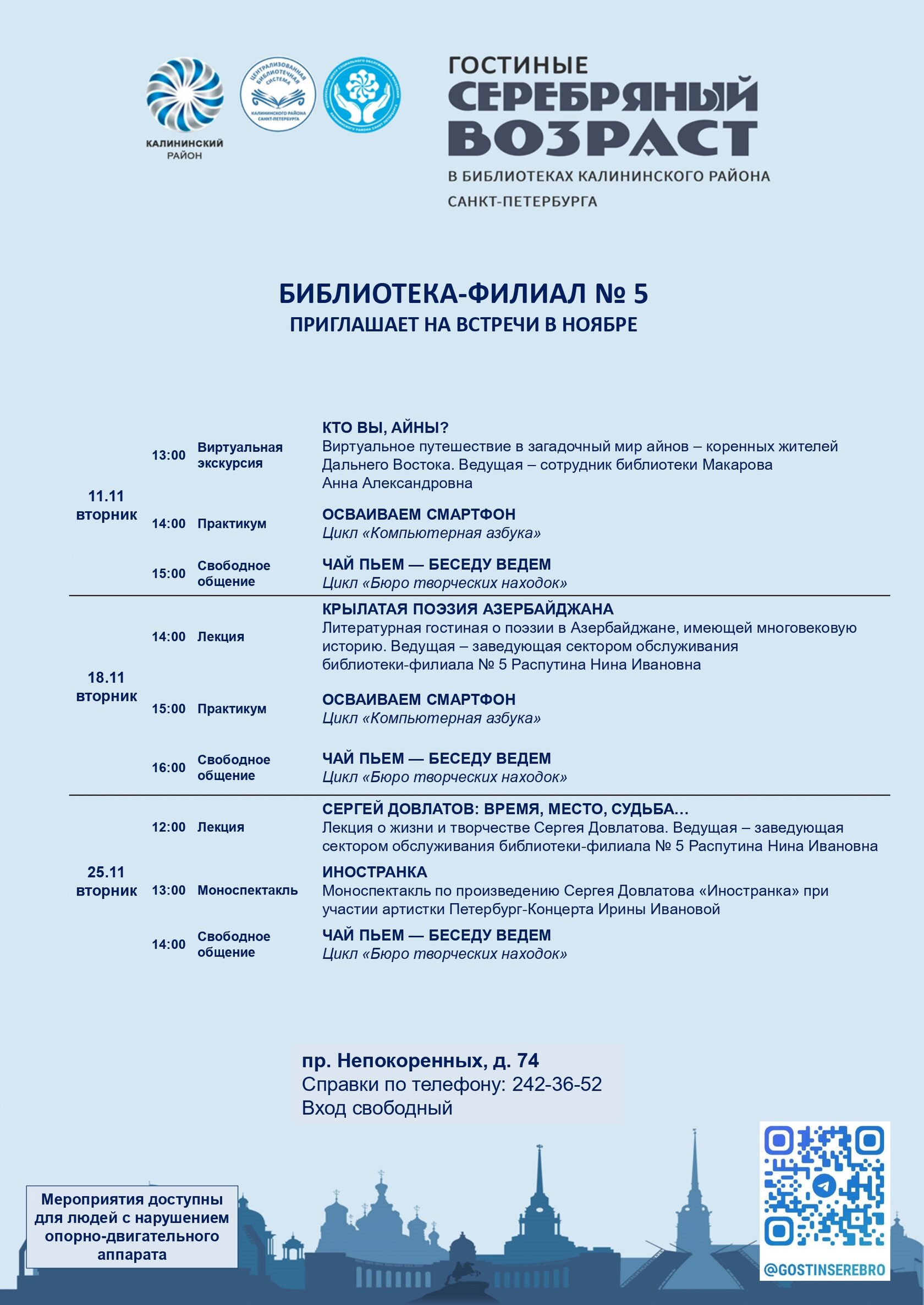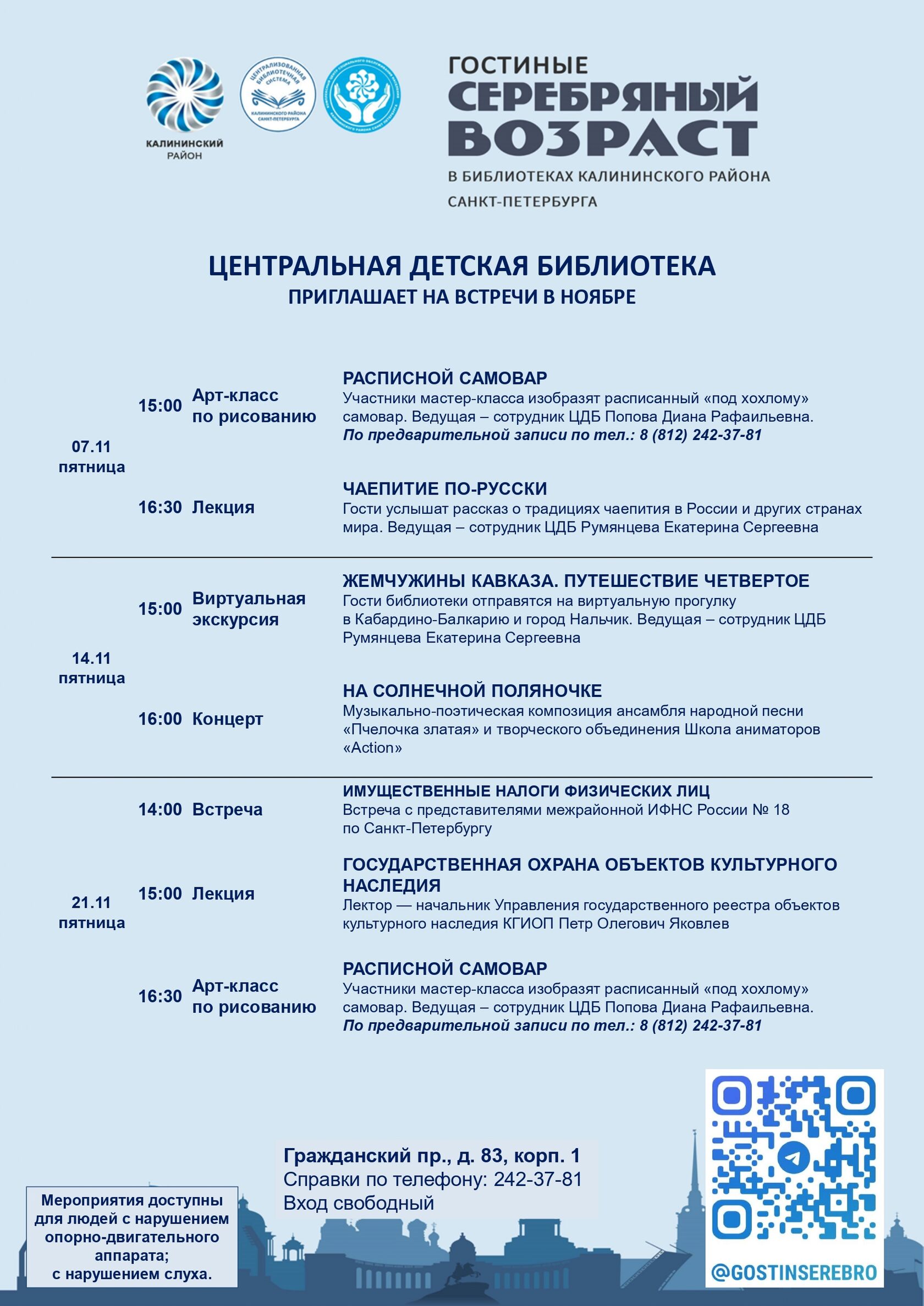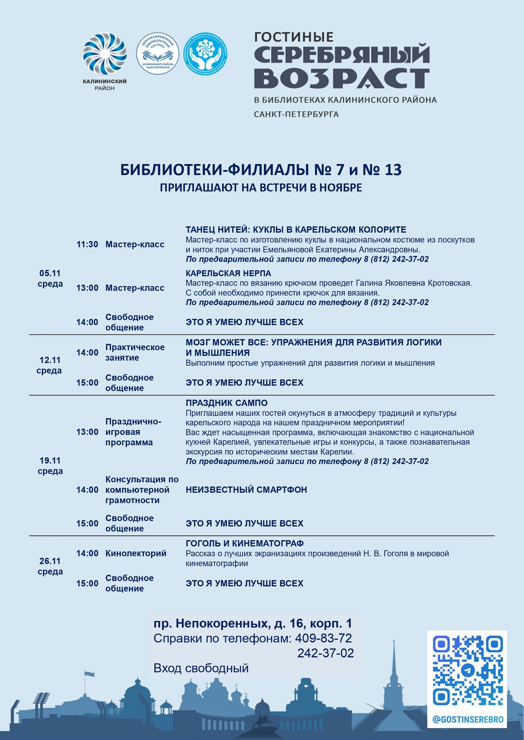 Афиша гостиных «Серебряный возраст» на ноябрь