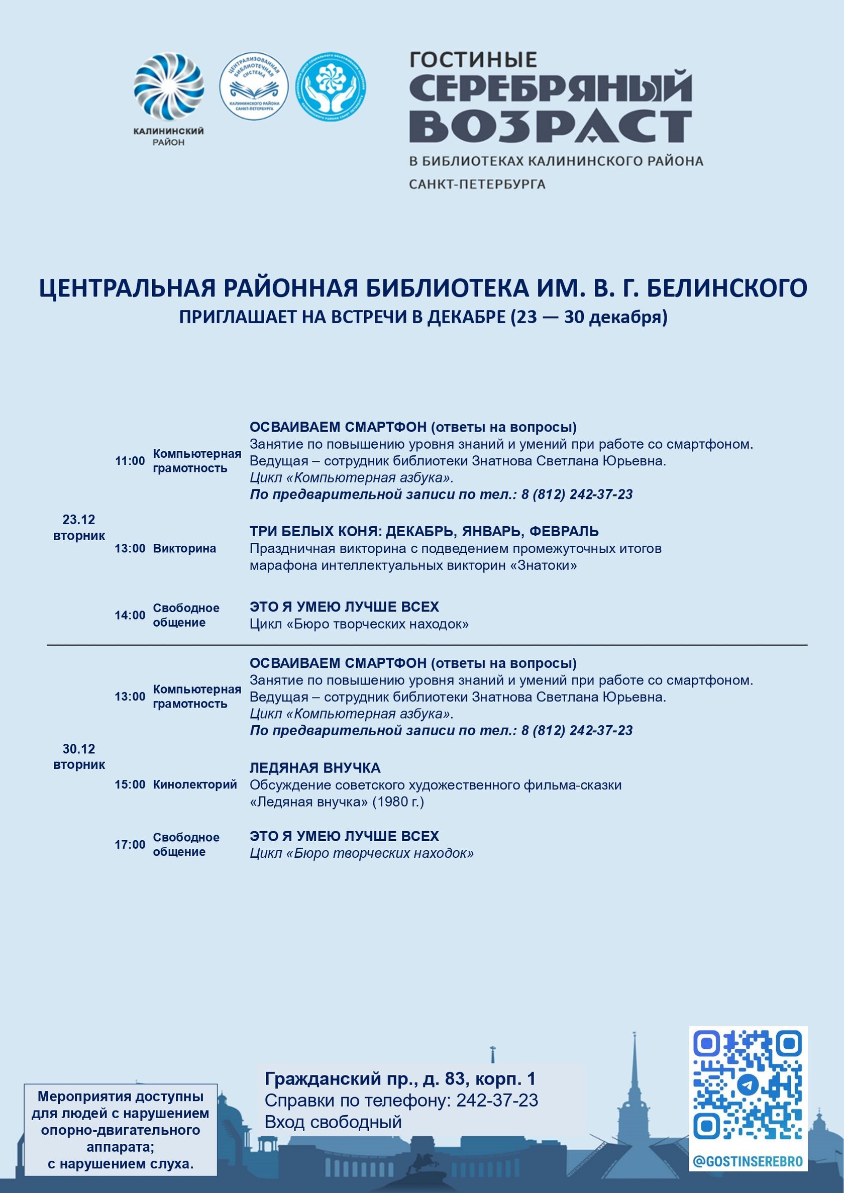 Афиша гостиных «Серебряный возраст» на декабрь