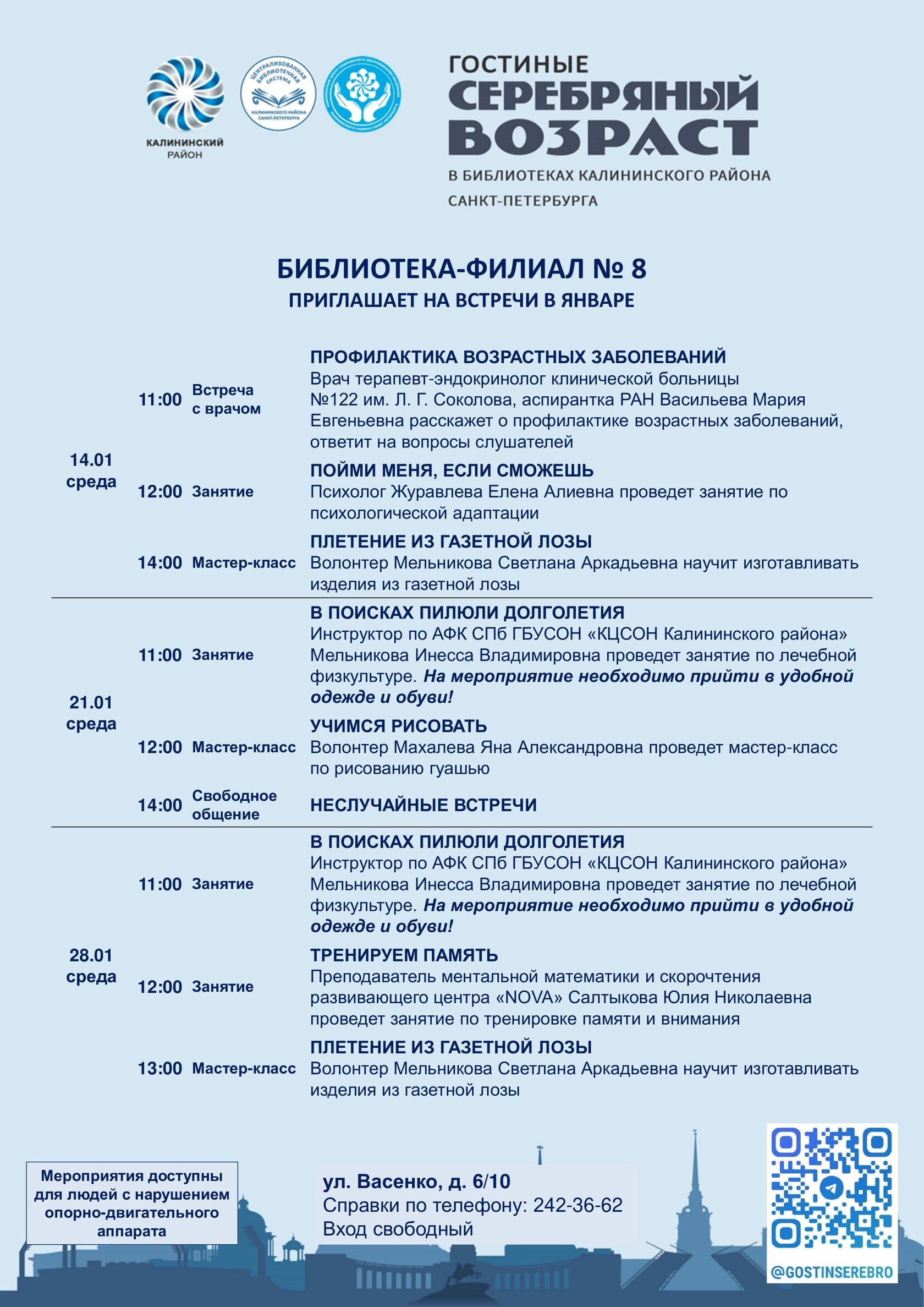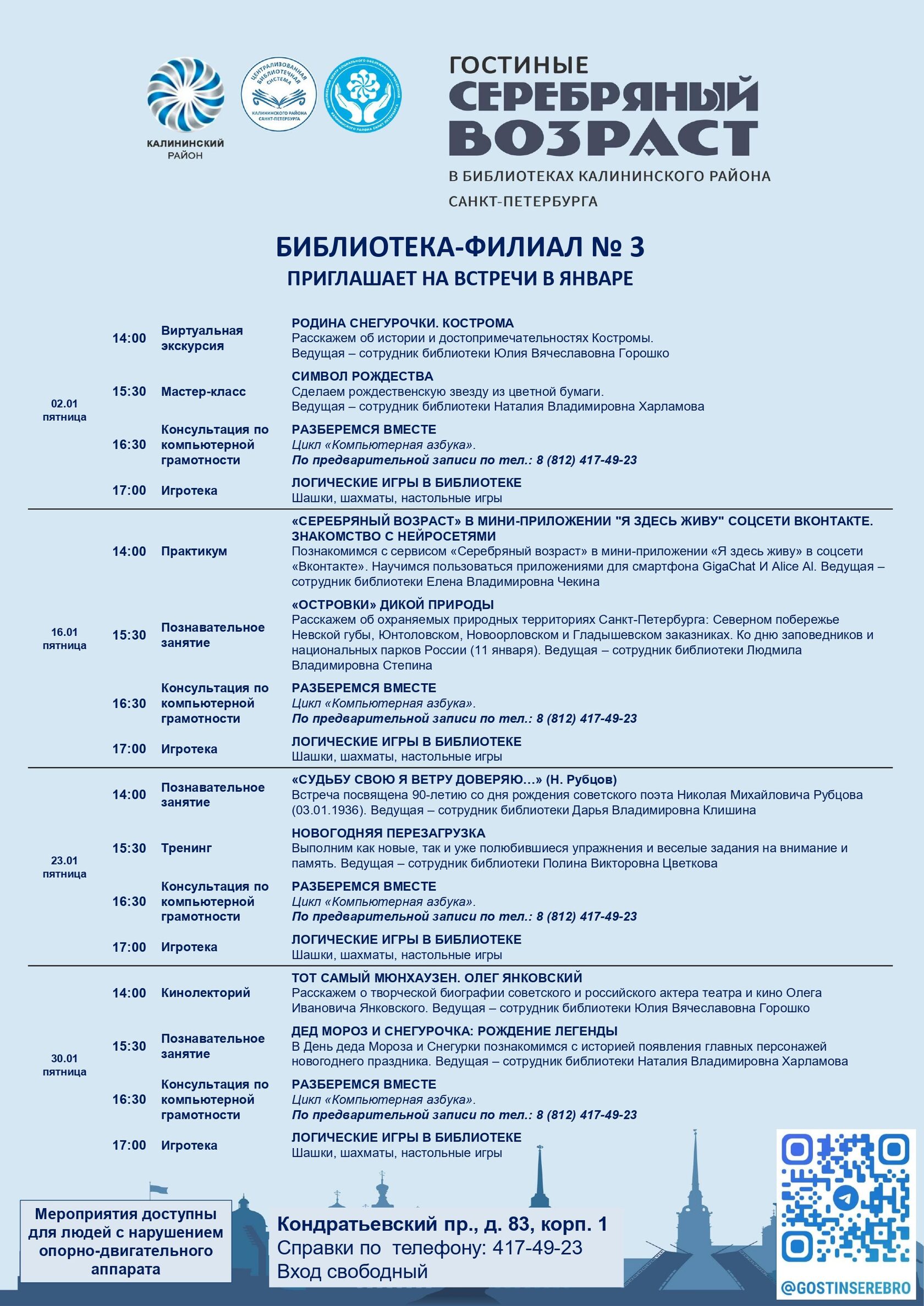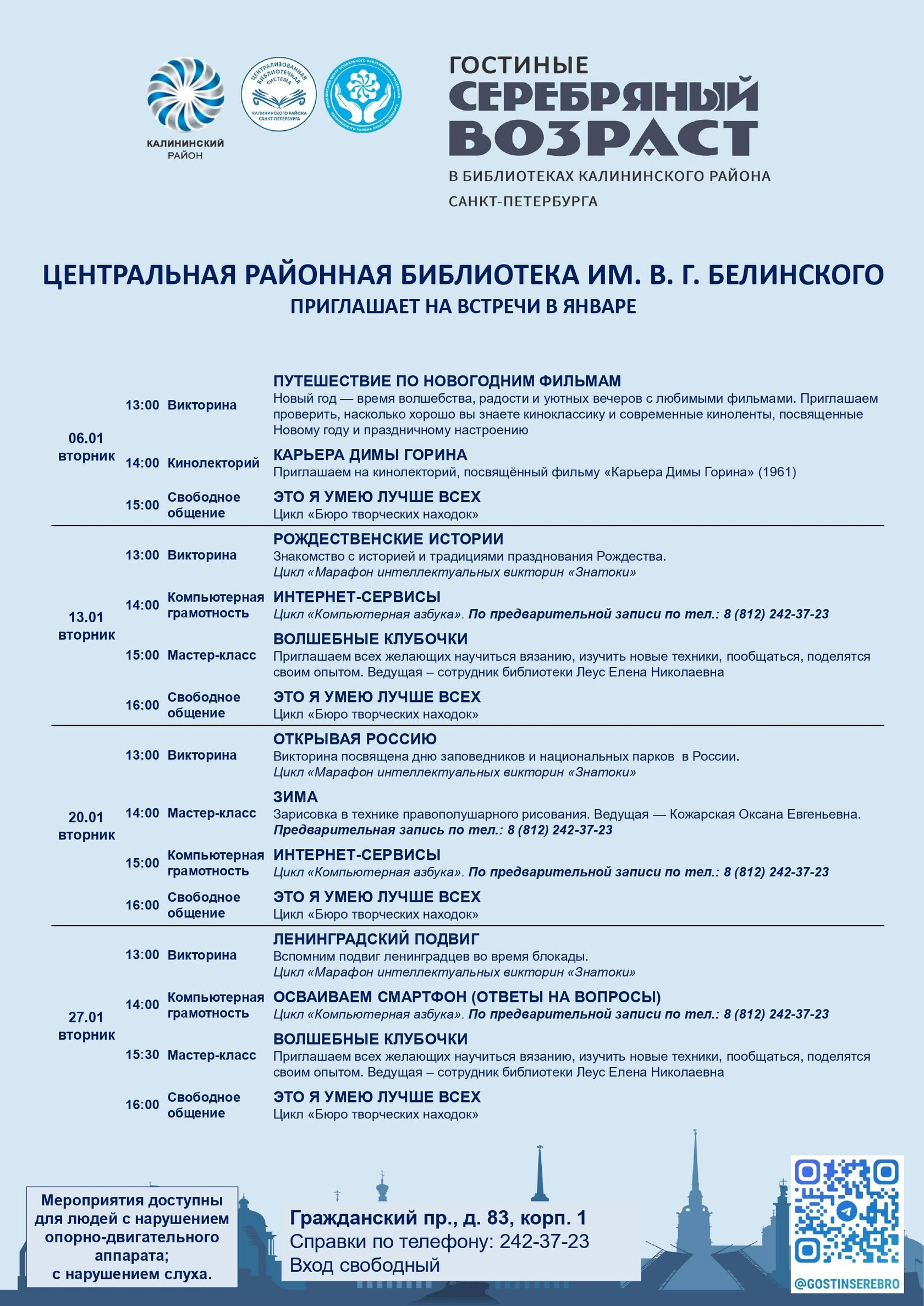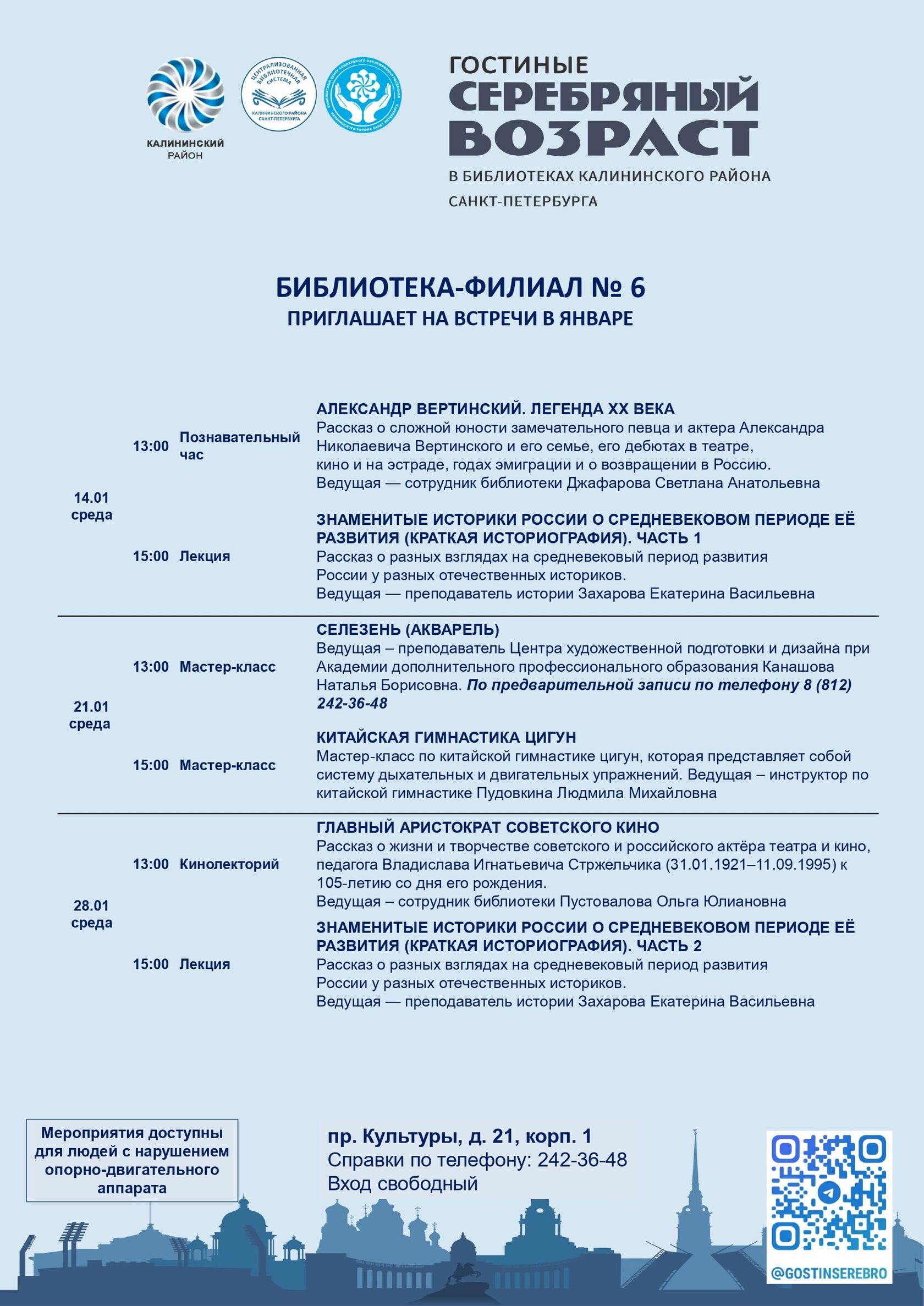 Афиша гостиных «Серебряный возраст» на январь 2026