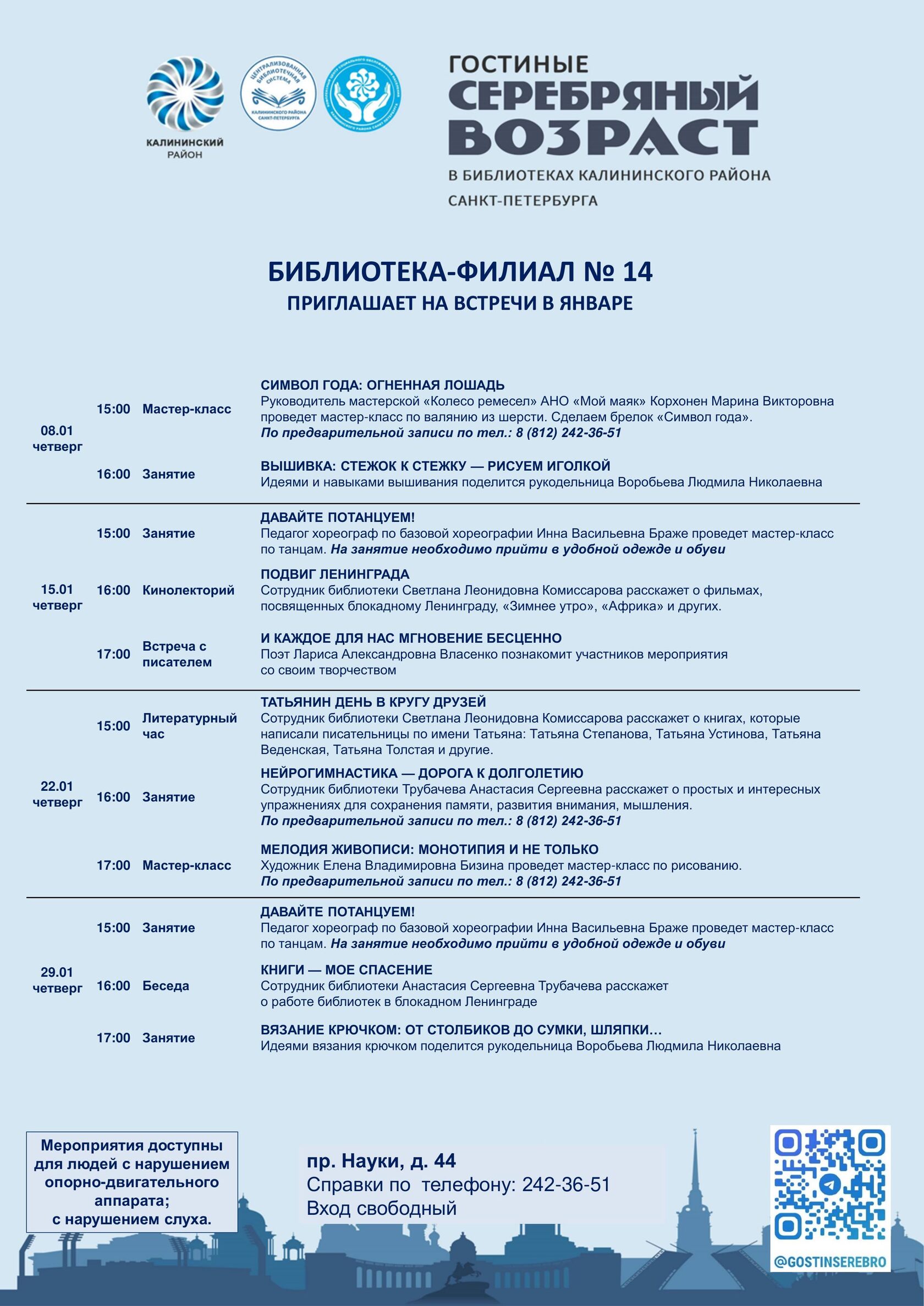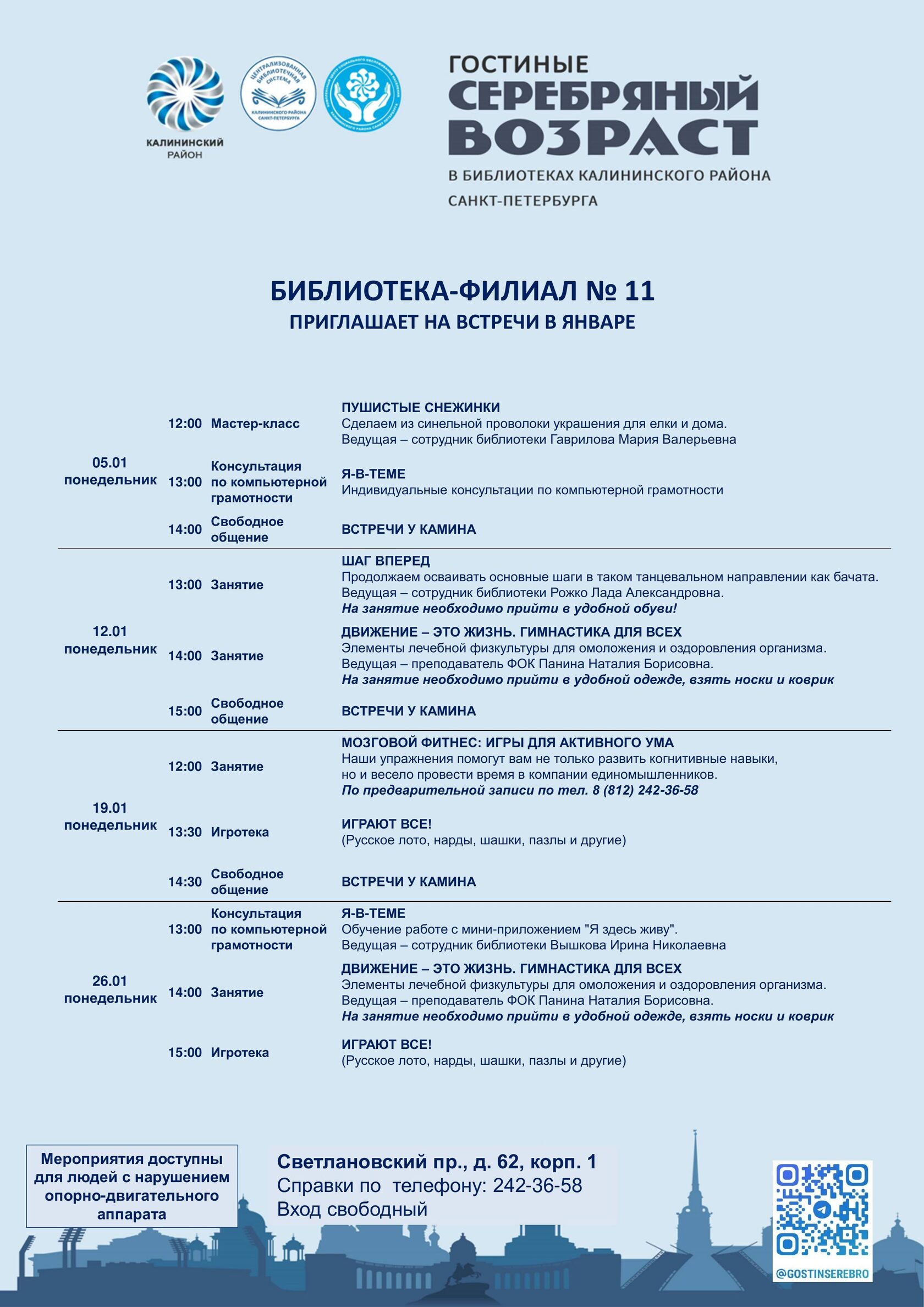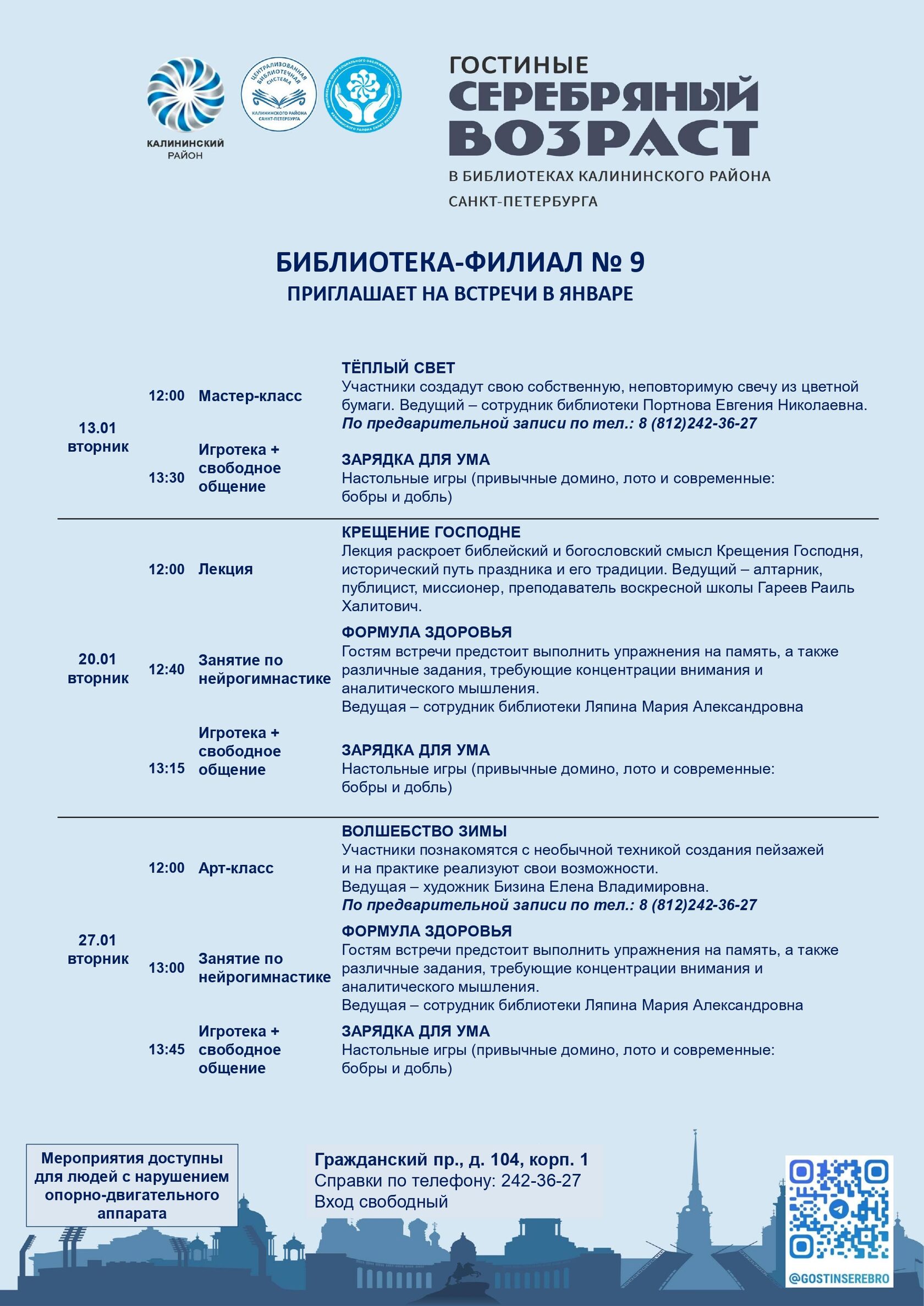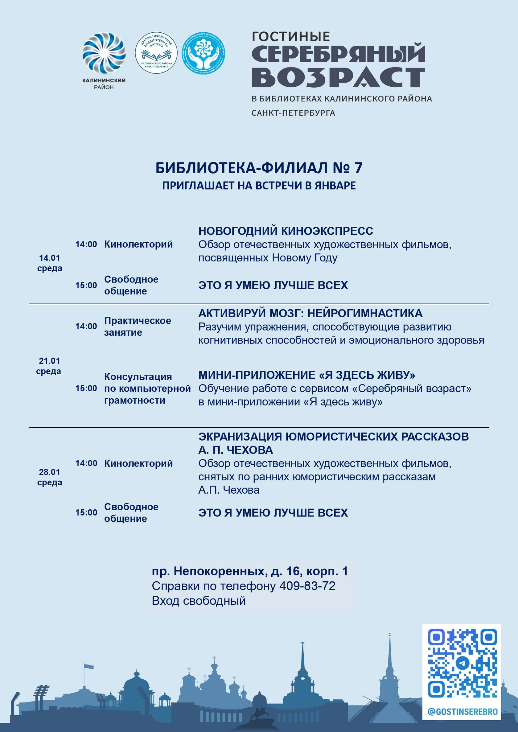 Афиша гостиных «Серебряный возраст» на январь 2026