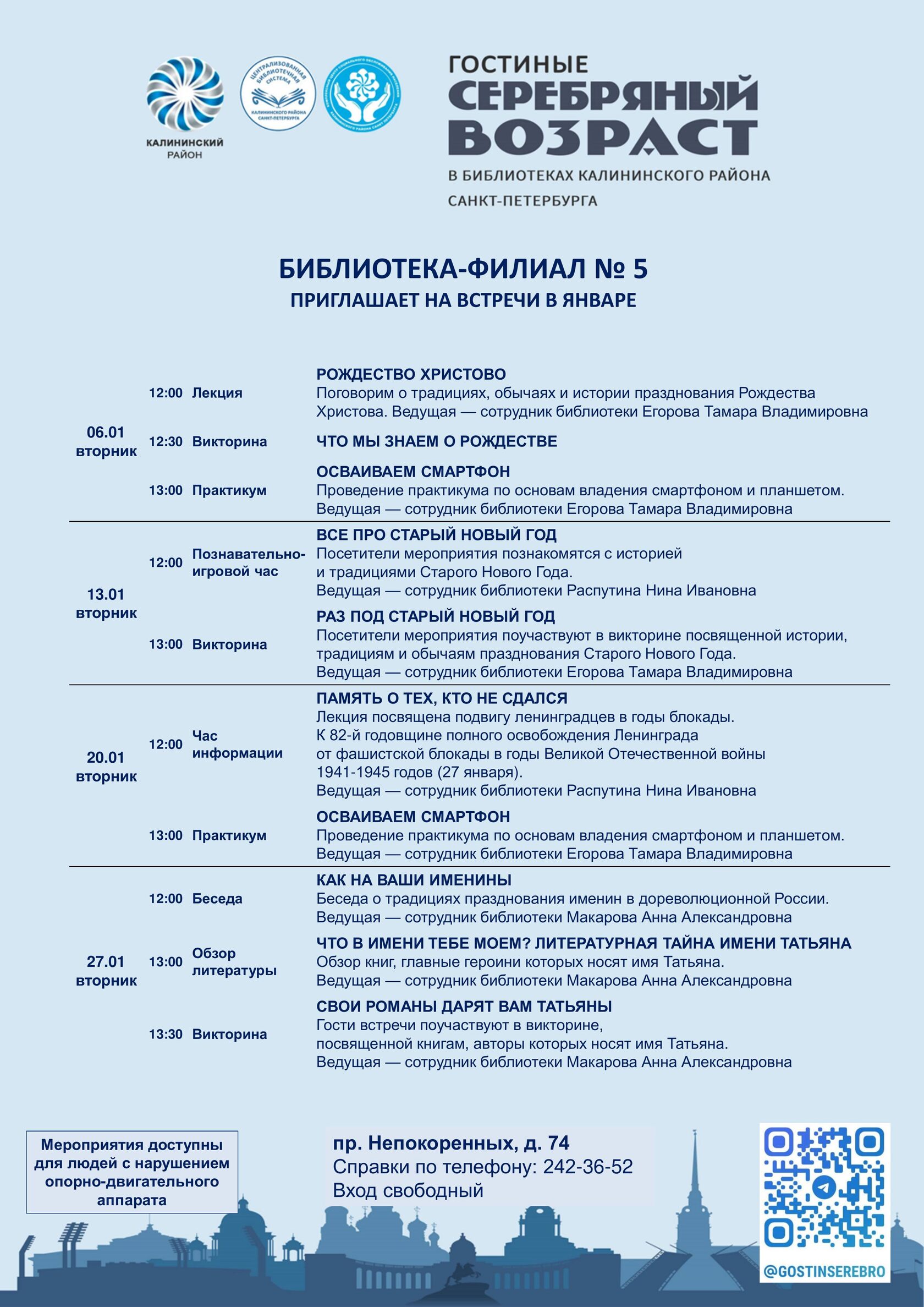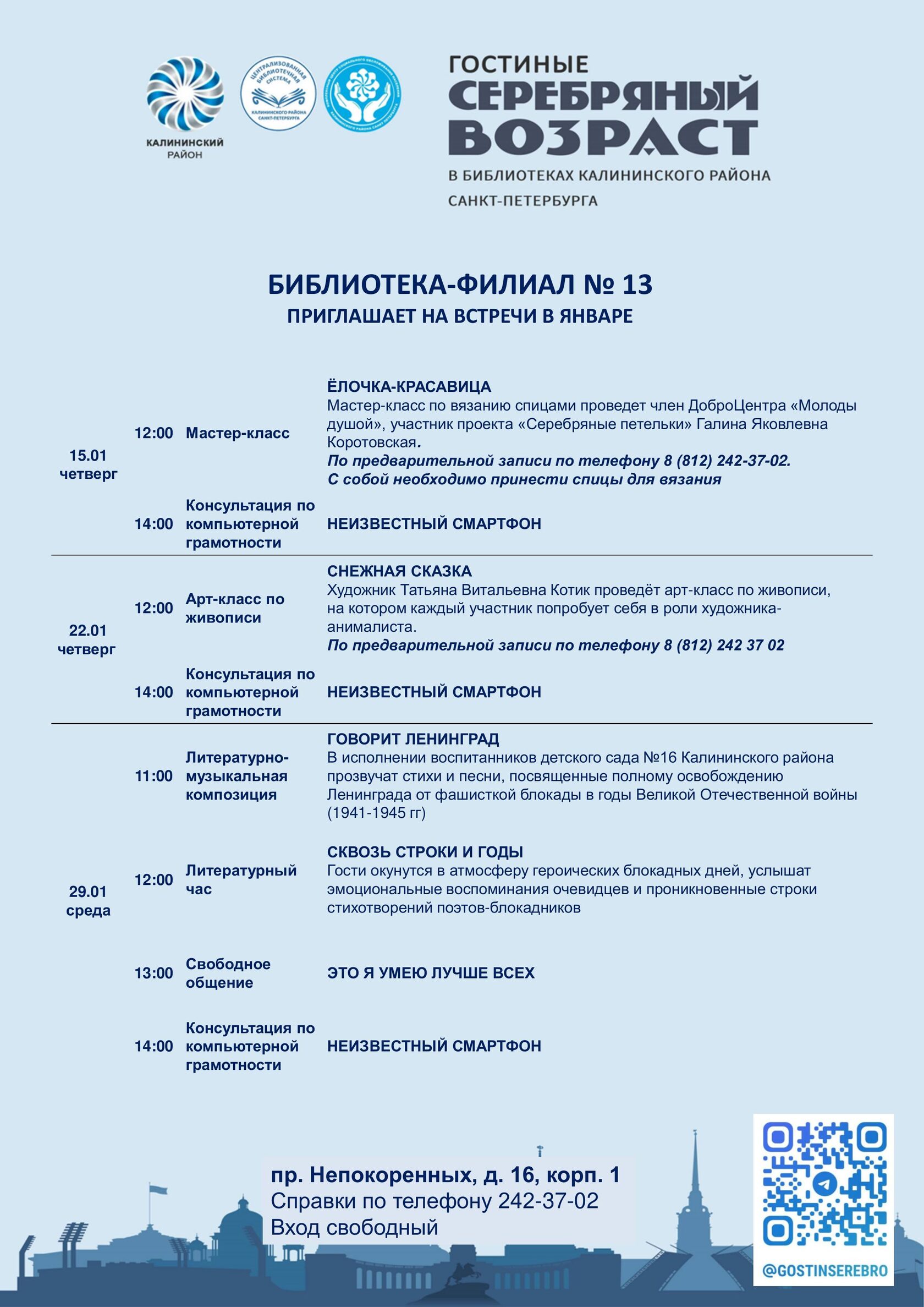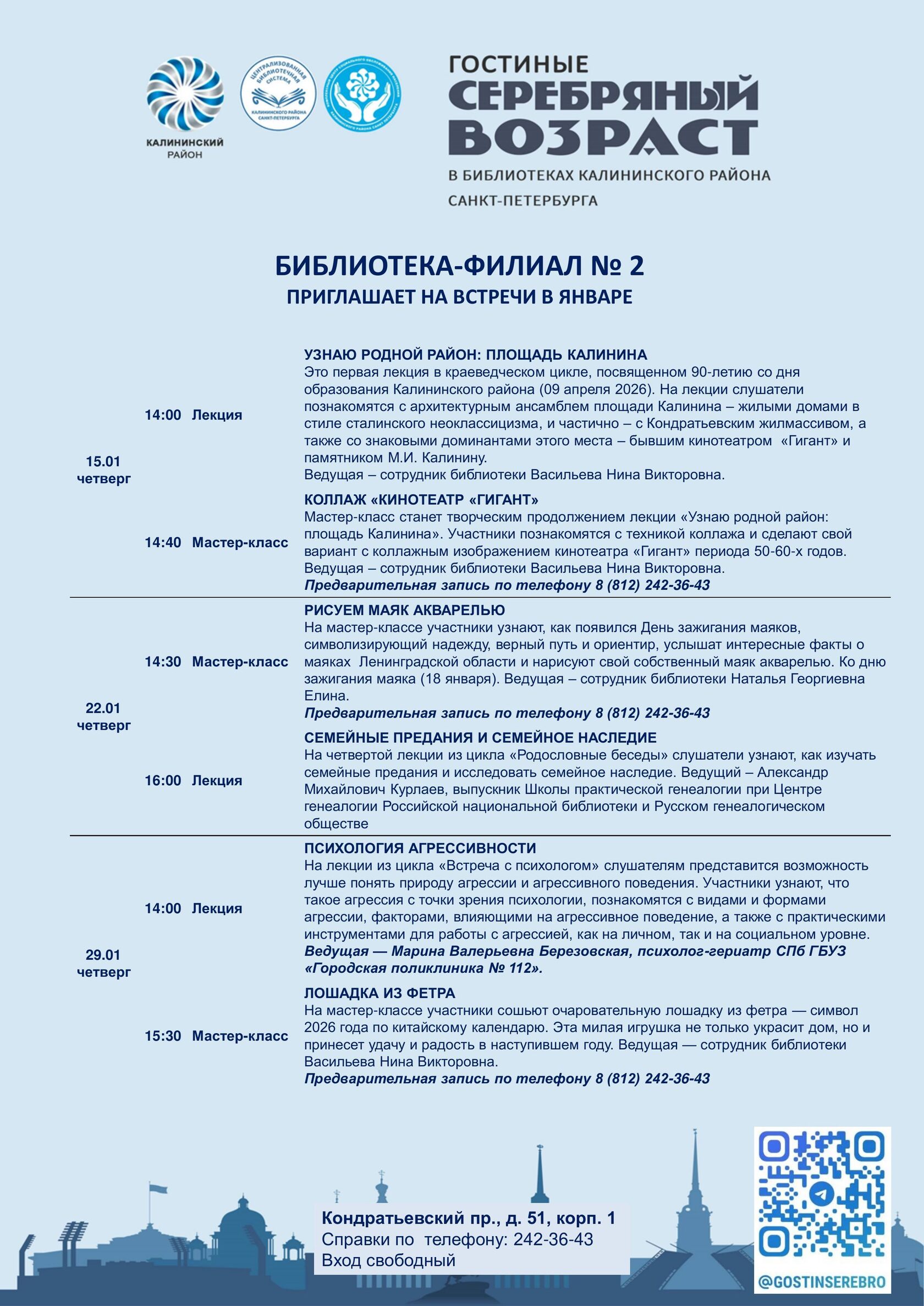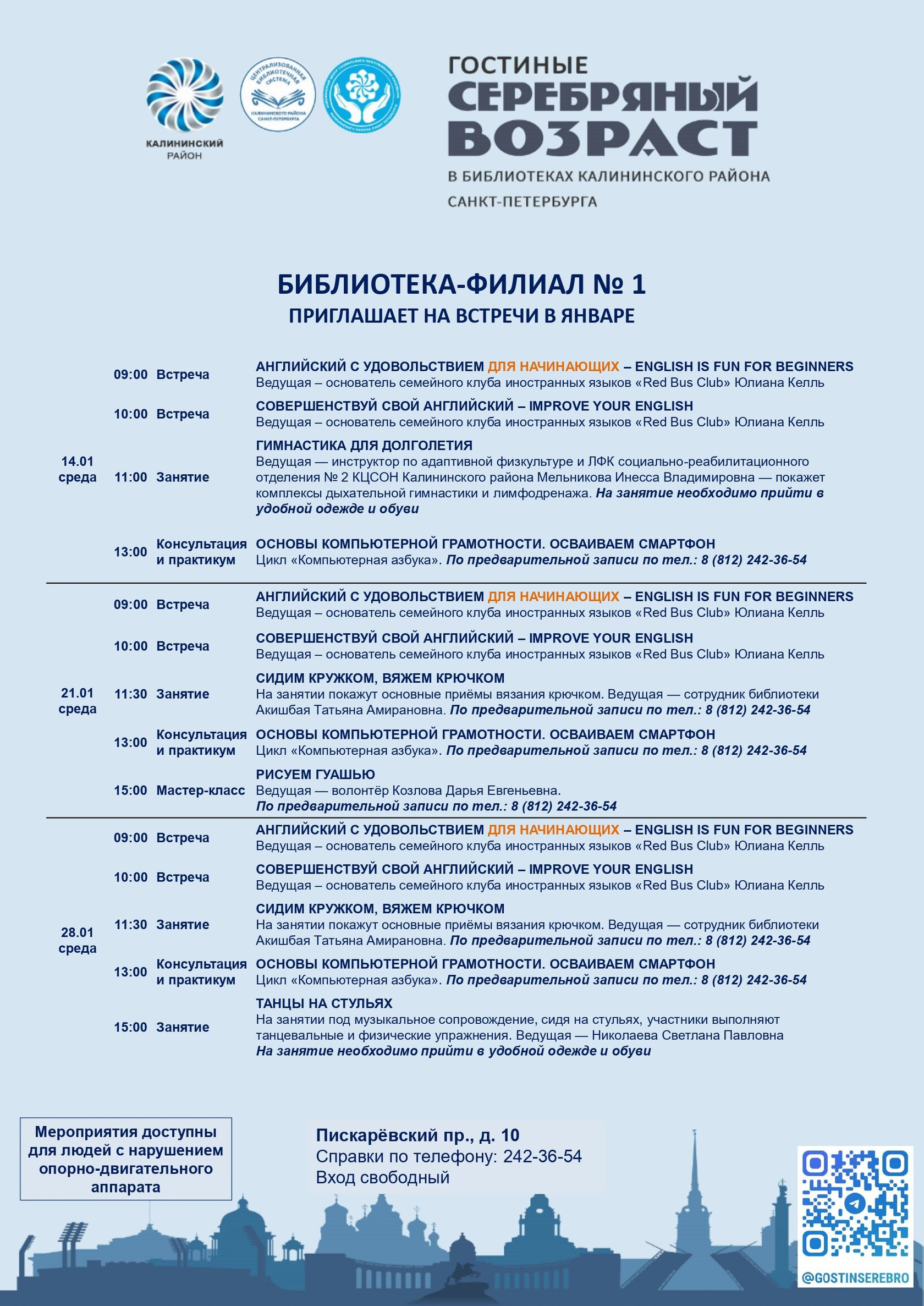 Афиша гостиных «Серебряный возраст» на январь 2026