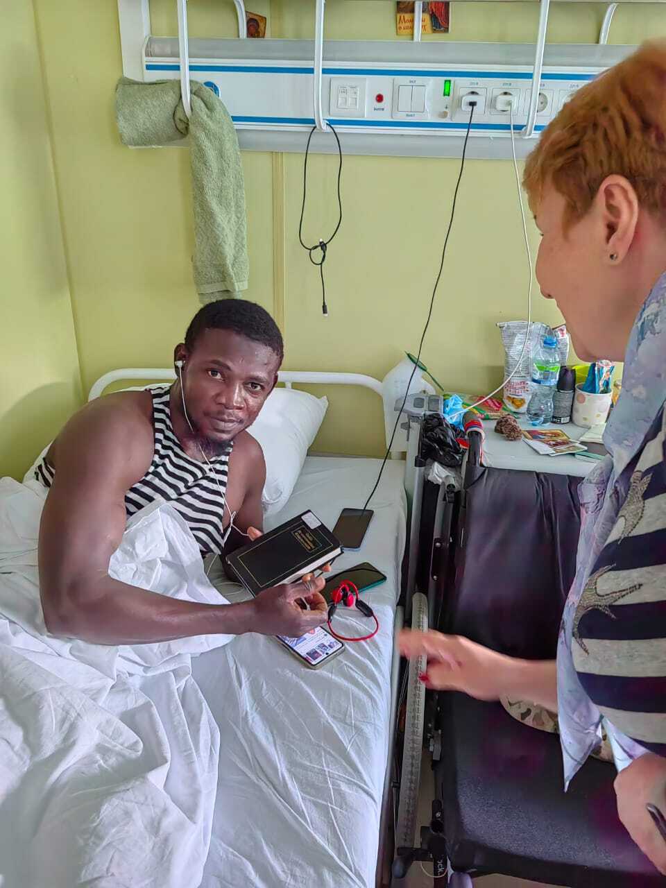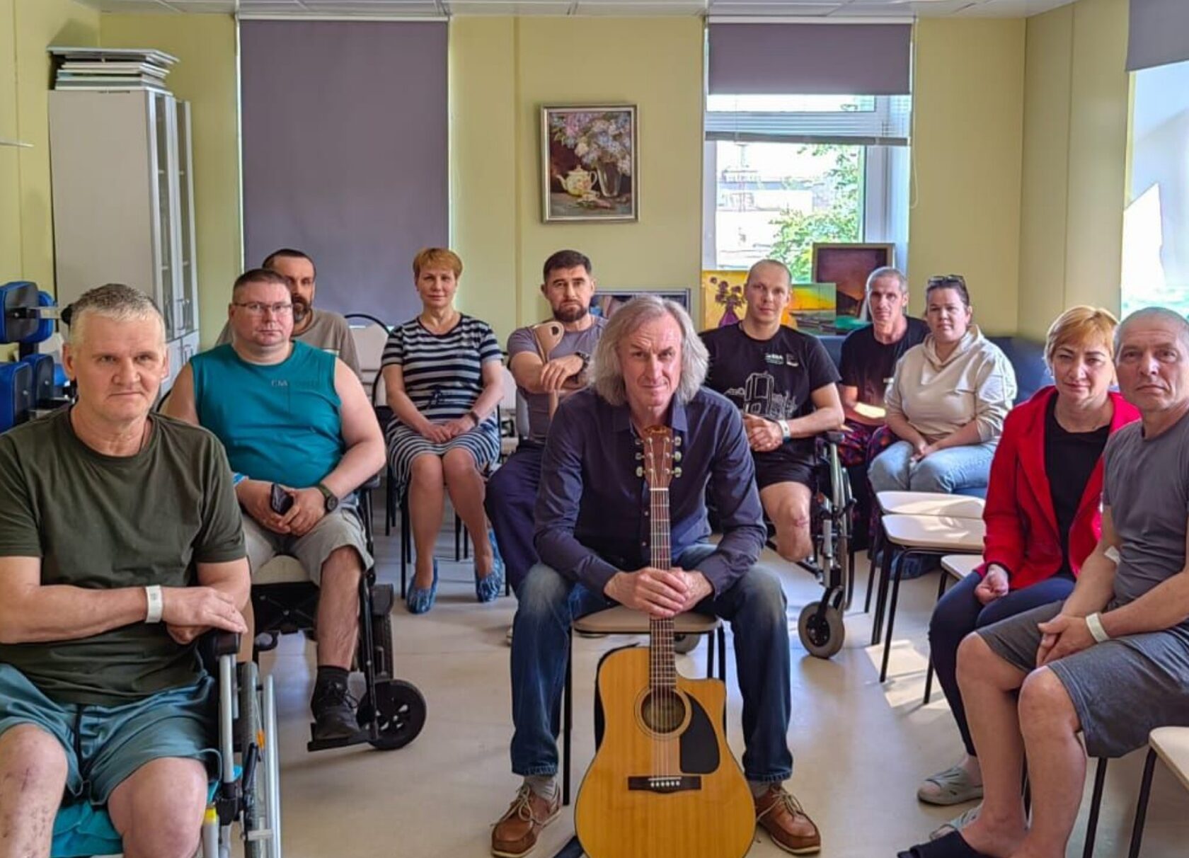03 июня сотрудники Центральной районной библиотеки им. В. Г. Белинского вновь побывали в Клинической больнице Святителя Луки. На этот раз библиотекари организовали для военнослужащих СВО, находящихся в клинике на лечении и реабилитации, творческую встречу с музыкантом, автором-исполнителем, экс-бас-гитаристом группы «Пикник» Александром Рокиным. Программа встречи была наполнена авторскими песнями под гитару и историями их создания, а также философскими размышлениями о жизни. Встреча прошла в теплой и душевной атмосфере.